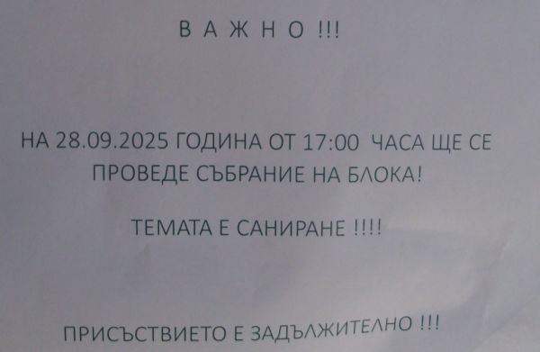 Преди дургарката господаря на входа домоДиктатора си беше спретнал събрание да ни навива да санираме.